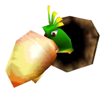 Estos enemigos al estar dentro de agujeros, atacan por sorpresa si se les acercan hacia ellos al igual que los Chompa Rejilla, para derrotarlos hay que utilizar el ataque Rat-a-tat Rap y saldrán de los agujeros.