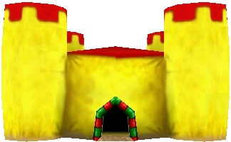 The Crazy Castle is a giant inflatable yellow castle located in the Wild West area of Witchyworld in Banjo-Tooie. To inflate the Crazy Castle, you must first go into the Pump Room where you split up Banjo and Kazooie and bring them to two switches. Once you've done that, the castle will start inflating. There are two challenges you can do inside the Crazy Castle: the Hoop Hurry Challenge (can only be done with Kazooie) and the Balloon Burst Challenge.