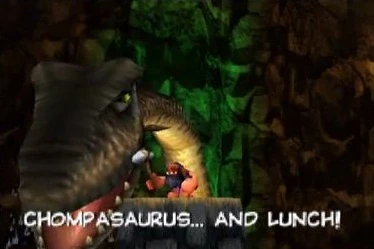 Although technically not a real character, Lunch is the name of an Unga Bunga Tribe member who is, fittingly, eaten by the Chompasaurus during the Character Parade at the end of Banjo-Tooie. This character's whole existence was made for the sake of a joke. Which Unga Bunga Tribe member appears is randomized each time the Character Parade is played. Sometimes it might be the member in purple guarding the entrance to the cave, other times it is the member in blue guarding the Oogle Boogle's cave, while other times it is the member in yellow who guarded over Targitzan's priceless relic thingy.